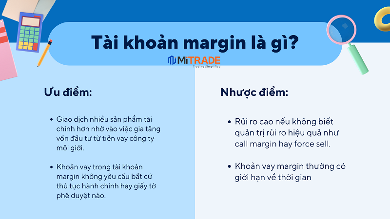 Trong thị trường chứng khoán ngày càng sôi động, nhiều nhà đầu tư lựa chọn tài khoản margin nhằm tối ưu hóa nguồn vốn và gia tăng lợi nhuận. Tuy nhiên, không phải ai cũng hiểu rõ về loại tài khoản này cũng như những cơ hội và rủi ro đi kèm. Bài viết dưới đây sẽ giúp bạn tìm hiểu chi tiết về tài khoản margin, từ khái niệm cơ bản đến các đặc điểm, lợi ích, rủi ro và cách mở cũng như các lưu ý quan trọng khi sử dụng tài khoản margin, giúp bạn đưa ra quyết định đầu tư hiệu quả và an toàn hơn.