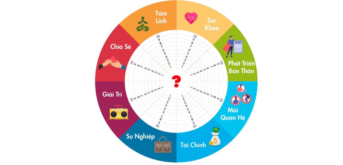 Bánh Xe Cuộc Đời là một công cụ rất hữu ích để bạn tự đánh giá và cải thiện các khía cạnh quan trọng trong cuộc sống. Công cụ này giúp bạn nhận diện được mức độ hài lòng và thực trạng của bản thân qua nhiều lĩnh vực khác nhau như sự nghiệp, tài chính, sức khoẻ, và các mối quan hệ. Bạn có thể chấm điểm cho từng khía cạnh từ 1 đến 10, từ đó dễ dàng thấy được điểm mạnh và điểm yếu của mình.