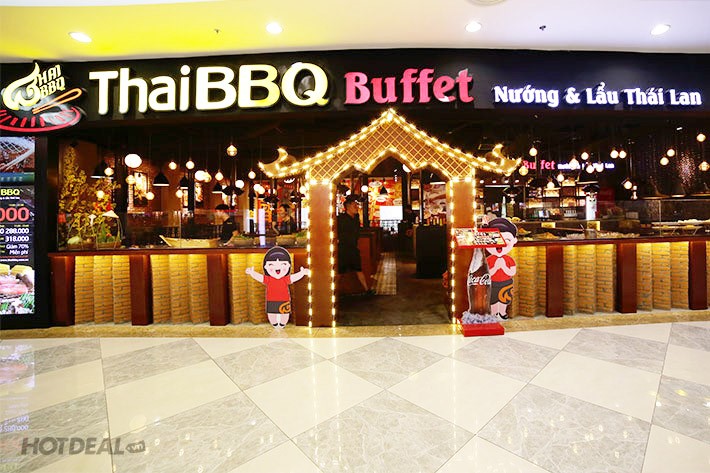 Thái BBQ Buffet tại Vincom Mega Mall Thảo Điền là điểm đến lý tưởng cho những ai yêu thích ẩm thực Thái Lan với không gian rộng rãi, thoáng đãng và thiết kế hiện đại, tạo cảm giác thoải mái cho thực khách khi thưởng thức bữa ăn. Quán nằm ở tầng 5 của trung tâm thương mại, mang đến sự tiện lợi và dễ dàng tiếp cận cho khách hàng.