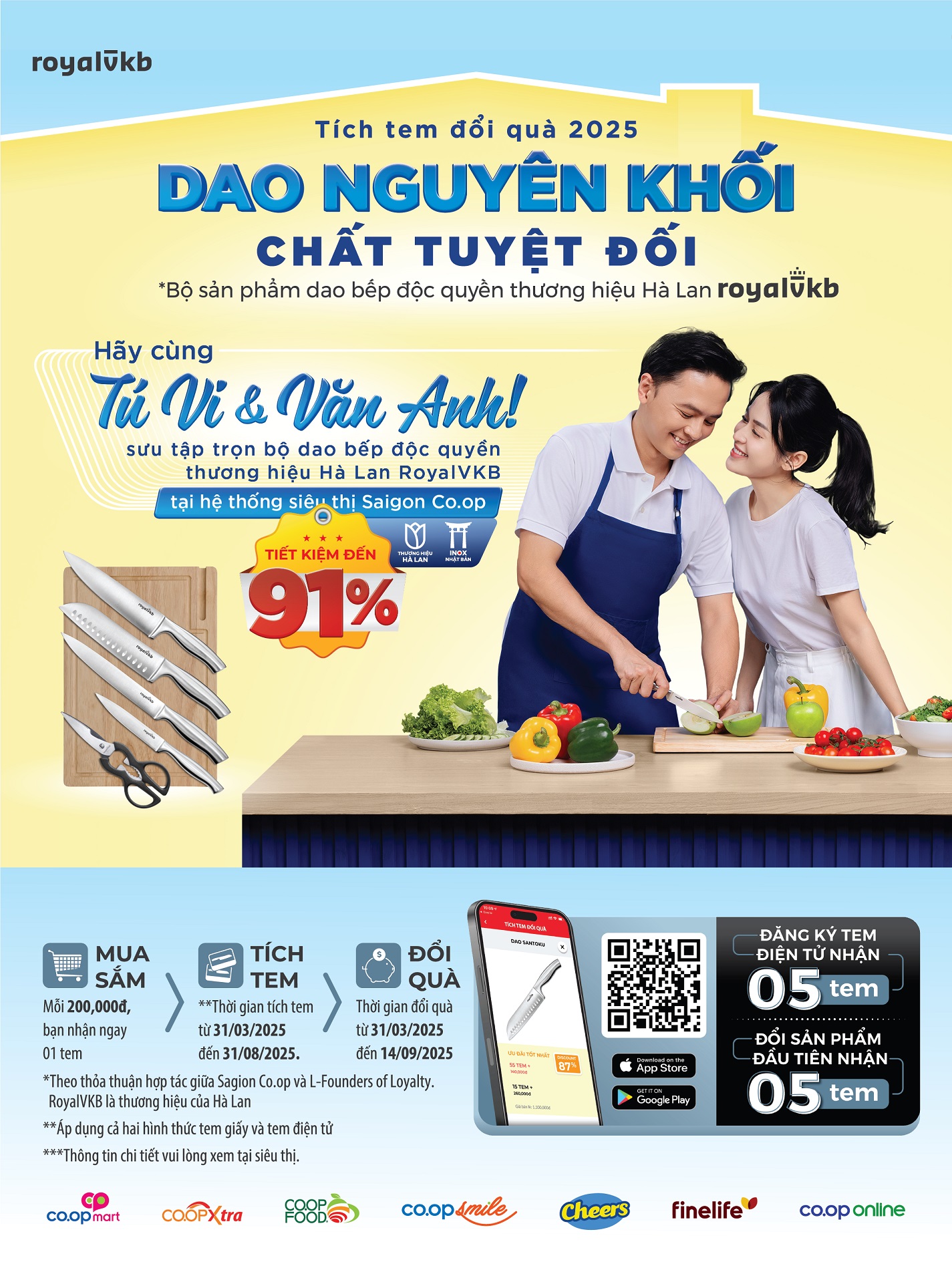 Chương trình “Tích tem đổi quà” tại Co.opmart đang trở lại và hứa hẹn những ưu đãi hấp dẫn cho các tín đồ mua sắm. Từ ngày 31/03 đến 31/08/2025, bạn có thể nhanh chóng tích lũy tem thưởng để đổi lấy bộ 6 món dao bếp và thớt chất lượng từ thương hiệu RoyalVKB. Thật bất ngờ, bạn chỉ cần mua sắm với hóa đơn từ 200.000 đồng trong khu tự chọn để nhận một tem.