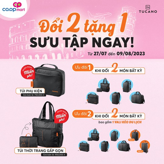Ngoài ra, Co.opmart dành tặng đến 500.000 bộ túi xách và hành lý phong cách Italy cho các khách hàng thân thiết. Với chương trình này, mình cảm thấy không chỉ được tiết kiệm mà còn xây dựng thêm mối quan hệ gắn bó với thương hiệu. Thật sự rất vui và đáng để thử nghiệm!