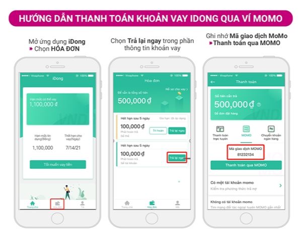 Thanh toán khoản vay qua ví điện tử MoMo đang trở thành một xu hướng tiện lợi đáng chú ý. Với chỉ vài cú nhấp chuột, bạn có thể thanh toán cho khoản vay của chính mình hoặc của người thân, bạn bè một cách dễ dàng bằng mã giao dịch MOMO. Dịch vụ vay tiền online của iDong cho phép bạn vay lên đến 10 triệu đồng, và chỉ cần CMND cùng bốn bước đăng ký đơn giản là bạn có thể nhận tiền ngay trong vòng một giờ.