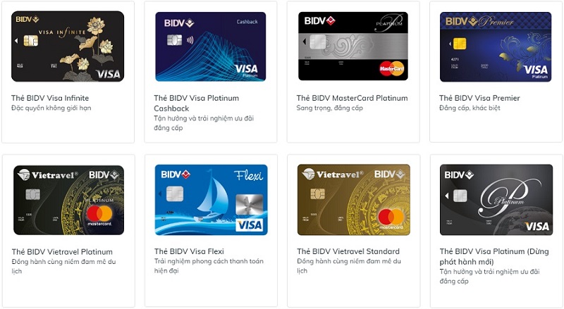 Ngoài ra, nếu bạn có nhu cầu mở thẻ tín dụng, BIDV cũng cung cấp nhiều loại thẻ đa dạng như thẻ BIDV Visa Flexi với mức phí thường niên chỉ 300.000 đồng. Bạn sẽ có 45 ngày miễn lãi suất cho mọi khoản chi tiêu và cũng có thể trả góp 0% tại hơn 5.000 đối tác trên toàn quốc.