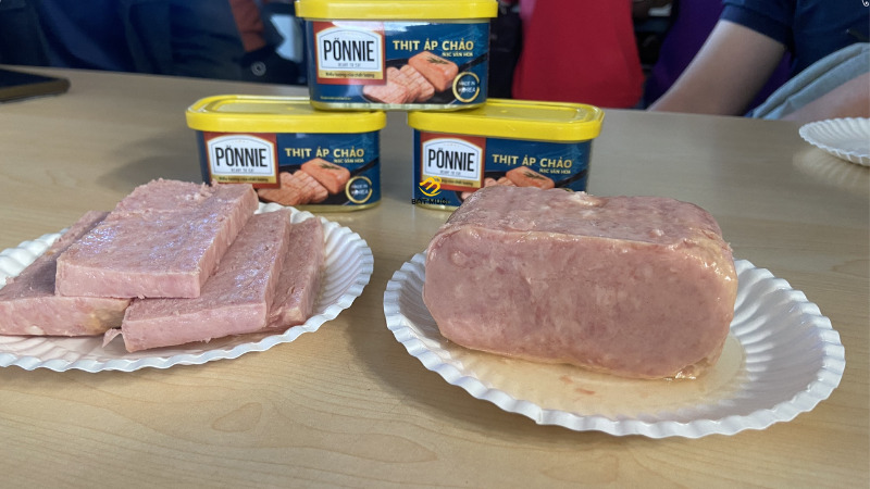 Điểm ấn tượng đầu tiên khi mở hộp thịt là hương thơm dễ chịu, vô cùng quyến rũ. Thịt được làm từ “nạc vân hoa”, với những lớp nạc xen kẽ vân mỡ, mang đến cảm giác mềm mọng và đầy đặn khi ăn. Nhiều người đã chia sẻ rằng thịt áp chảo Ponnie cực kỳ ngon khi ăn cùng cơm, khiến cho bữa ăn trở nên thật đáng nhớ.