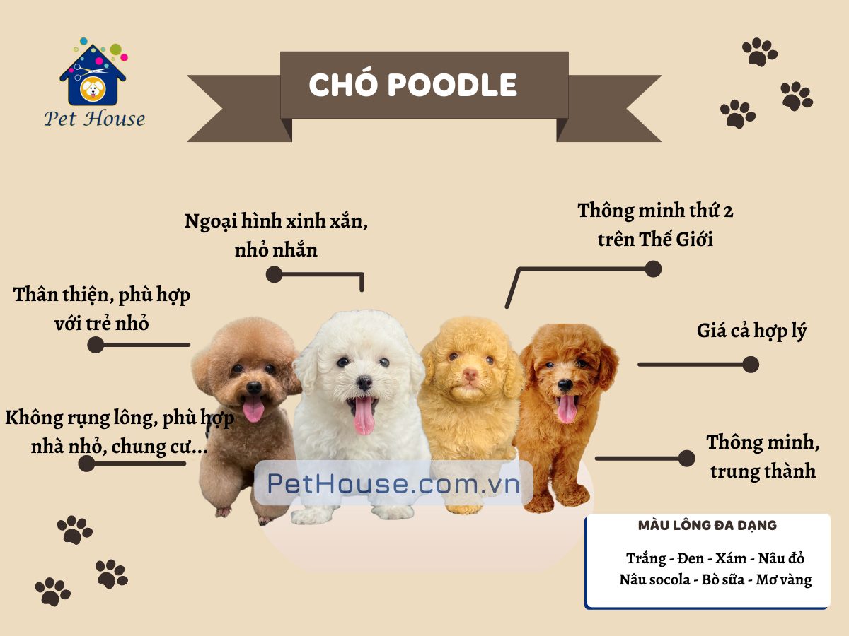 Chó Poodle từ lâu đã trở thành người bạn thân thiết của nhiều gia đình bởi vẻ ngoài đáng yêu cùng sự thông minh, lanh lợi hiếm có. Không chỉ gây ấn tượng với bộ lông xoăn đặc trưng, Poodle còn cuốn hút bởi tính cách thân thiện, sống tình cảm và rất trung thành. Nếu bạn đang tìm hiểu về giống chó “quý tộc” này hay muốn đón thêm một thành viên nhỏ xinh vào tổ ấm của mình, bài viết dưới đây sẽ chia sẻ tất tần tật những điều thú vị về chó Poodle – từ nguồn gốc, đặc điểm, tính cách, cách chăm sóc đến cả những lưu ý quan trọng khi nuôi em ấy. Hãy cùng khám phá nhé!