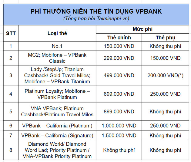Ngoài ra, phí thường niên cho các loại thẻ VPBank cũng rất đa dạng, từ khoảng 150.000 VNĐ cho thẻ No.1 và MC2 đến 1.500.000 VNĐ cho những thẻ cao cấp hơn. Một điểm thú vị là nếu bạn duy trì số dư từ 2 triệu đồng trở lên, sẽ không mất phí cho tài khoản thanh toán thường. Thật tiện lợi phải không?