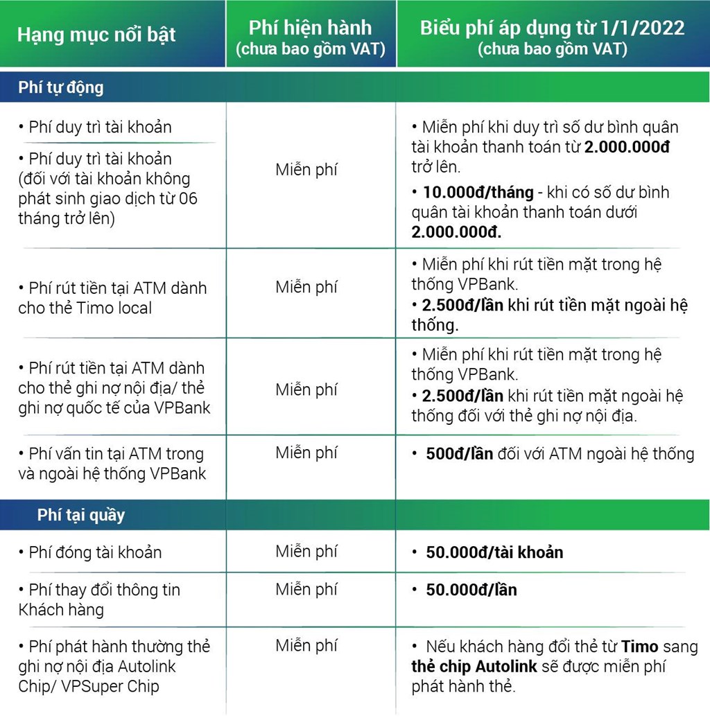 Hiện tại, phí duy trì tài khoản thanh toán tại VPBank là 10.000 VNĐ/tháng nếu số dư bình quân của bạn dưới 2 triệu đồng. Điều này có nghĩa là nếu bạn giữ số dư dưới mức này, mỗi tháng sẽ bị trừ 10.000 VNĐ từ tài khoản. Tuy nhiên, nếu bạn không để đồng nào trong tài khoản, bạn sẽ không bị trừ phí.