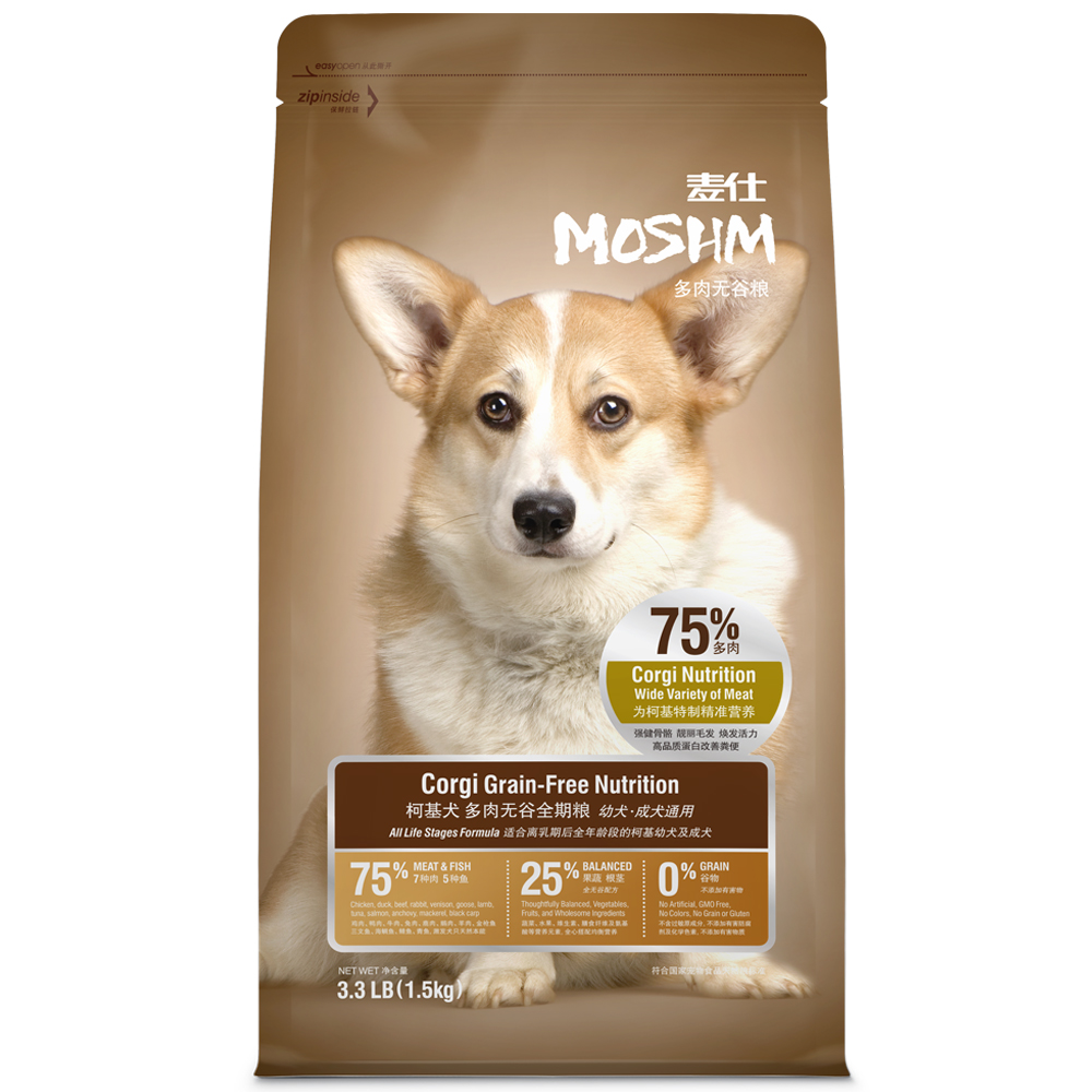 Tinh bột từ cơm, khoai lang hay lúa mạch chỉ cần vừa đủ năng lượng, tránh thừa cân vì Corgi hay béo phì. Kết hợp thức ăn tươi tự chế như cháo thịt rau củ, hoặc hạt khô cao cấp giàu omega như Moshm, Zenith để não bộ phát triển.