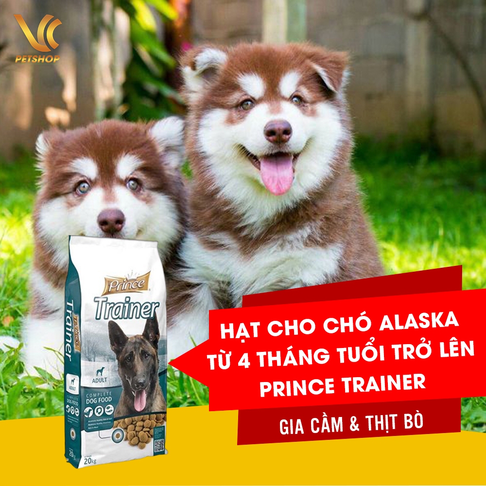 Bạn có thể thử các loại hạt chất lượng như Ganador Puppy dành cho cún con, giàu protein từ thịt tươi, hỗ trợ tiêu hóa và tăng cân đều. Hoặc Prince Junior Puppy với 50% thịt gia cầm và bò, nhập khẩu từ châu Âu, rất phù hợp cho Alaska từ 1-12 tháng tuổi.