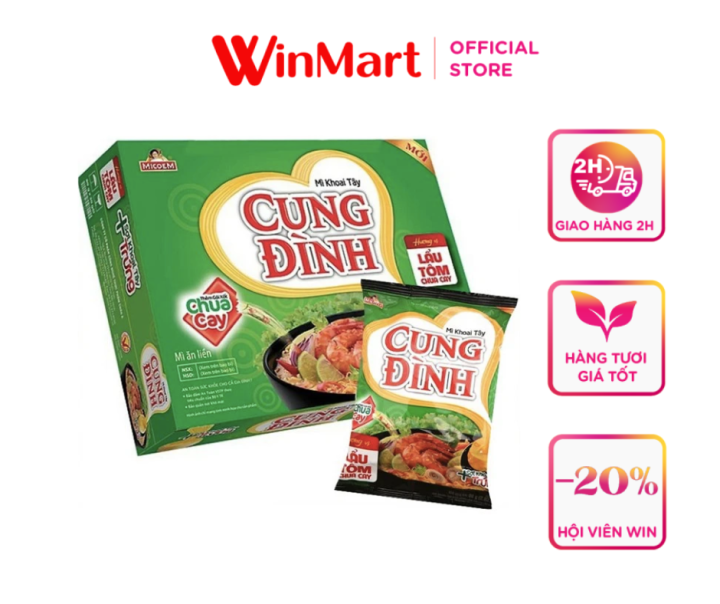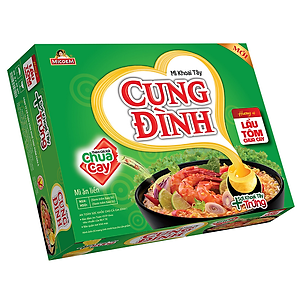 Giá cả cũng rất hợp lý, chỉ khoảng 136.000 đồng cho thùng 30 gói, giúp bạn tiết kiệm chi phí mà vẫn có bữa ăn ngon miệng. Hãy thử ngay thùng mì Cung Đình lẩu tôm chua cay để khám phá hương vị độc đáo này nhé!