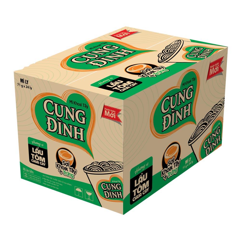 Ngoài mì gói, thùng mì ly Cung Đình cũng rất hấp dẫn với nhiều vị khác nhau. Thùng 24 ly tôm chua cay có giá khoảng 212.000 đồng, rất đáng để thử. Nếu bạn đang tìm kiếm một món ăn tiện lợi mà vẫn giữ được hương vị đậm đà thì mì Cung Đình là lựa chọn hoàn hảo.