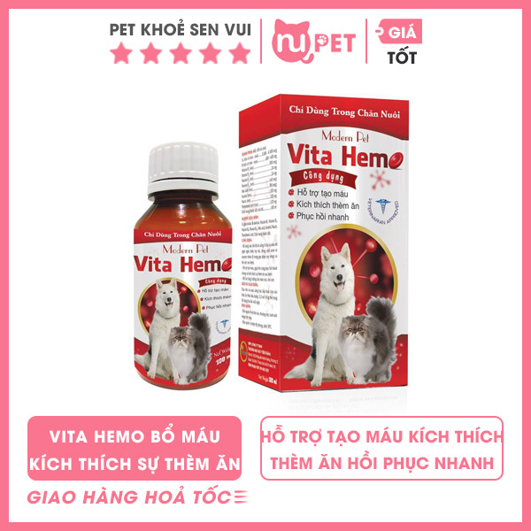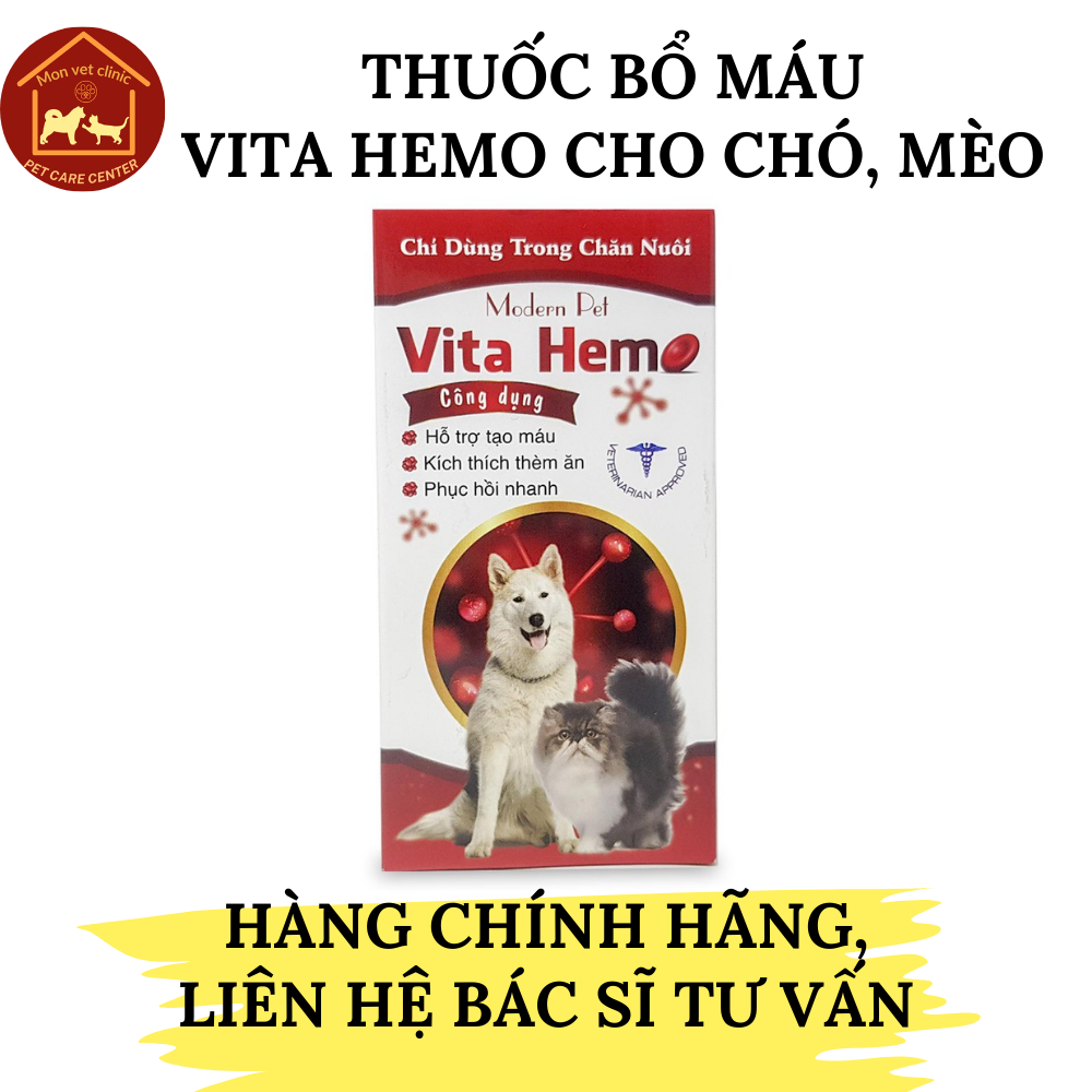 Nếu chú chó nhà bạn đang mệt mỏi, biếng ăn hay dấu hiệu thiếu máu, việc chọn thuốc bổ máu tốt là rất quan trọng để giúp bé nhanh khỏe trở lại. Vita Hemo là lựa chọn hàng đầu, dạng dung dịch dễ uống với vitamin B-complex, sắt, đồng và axit folic, hỗ trợ tạo máu nhanh chóng và kích thích thèm ăn.