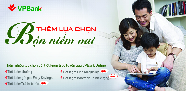 Ngoài ra, VPBank còn cung cấp gói tiết kiệm gửi góp Easy Savings@Kids, rất phù hợp với cha mẹ muốn xây dựng quỹ tiết kiệm cho tương lai của con cái. Đối với tiền gửi tiết kiệm online, VPBank cũng hấp dẫn không kém khi áp dụng lãi suất cao hơn khoảng 0,2% so với gửi tại quầy.