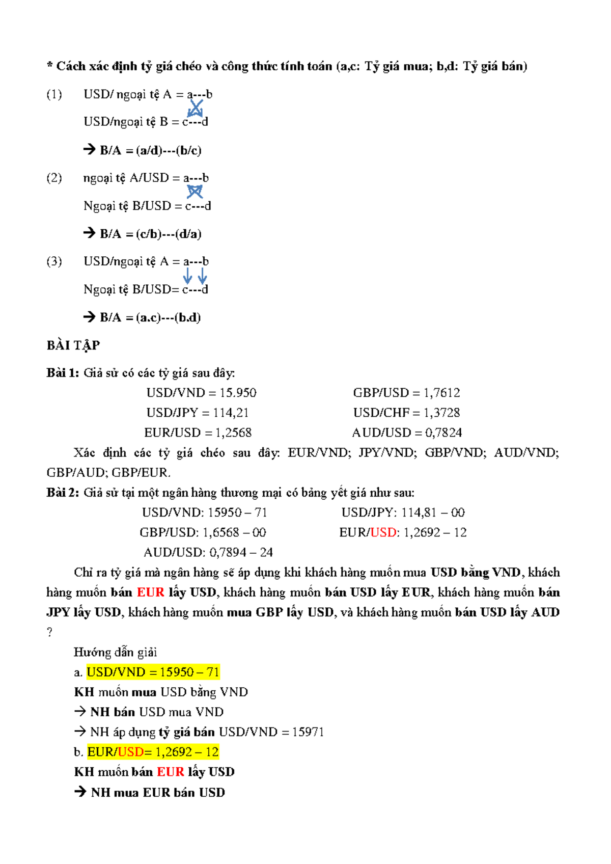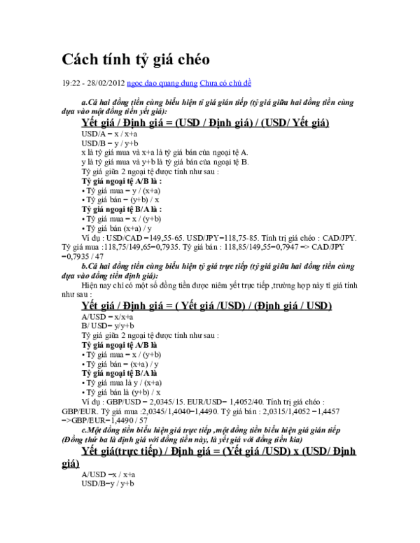 Ngoài ra, trong thực tế, việc tính toán này còn giúp các nhà đầu tư thực hiện các chiến lược như arbitrage, nơi họ có thể khai thác sự chênh lệch tỷ giá để tạo ra lợi nhuận. Bằng cách nắm bắt tỷ giá chéo, chúng ta không chỉ hiểu rõ hơn về thị trường tiền tệ mà còn có cơ hội tối ưu hóa giao dịch của mình.