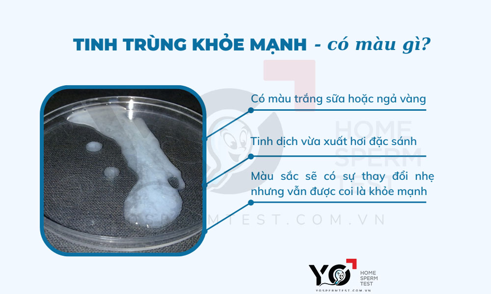 Màu trắng đục hoặc trắng xám thường được xem là dấu hiệu cho thấy tinh dịch khỏe mạnh, trong khi màu vàng nhạt cũng không phải là vấn đề nghiêm trọng, đặc biệt nếu bạn đã lâu chưa xuất tinh. Tuy nhiên, nếu tinh dịch có dấu hiệu bất thường như màu đỏ hay xanh, bạn nên tham khảo ý kiến bác sĩ vì đây có thể là dấu hiệu của một số vấn đề sức khỏe.