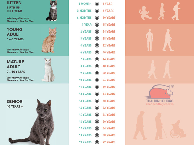 Biết tuổi mèo không chỉ là chuyện vui, mà còn giúp ta chăm sóc chúng tốt hơn. Mèo già đi nhanh lắm, năm đầu đời tương đương 15 năm người, năm thứ hai thêm 9 năm, sau đó mỗi năm là 4 năm người. Nhờ vậy, bạn nhận ra khi nào mèo cần khám sức khỏe, tránh để chúng đau đớn vì bệnh tuổi già như mắt mờ hay răng ố vàng.