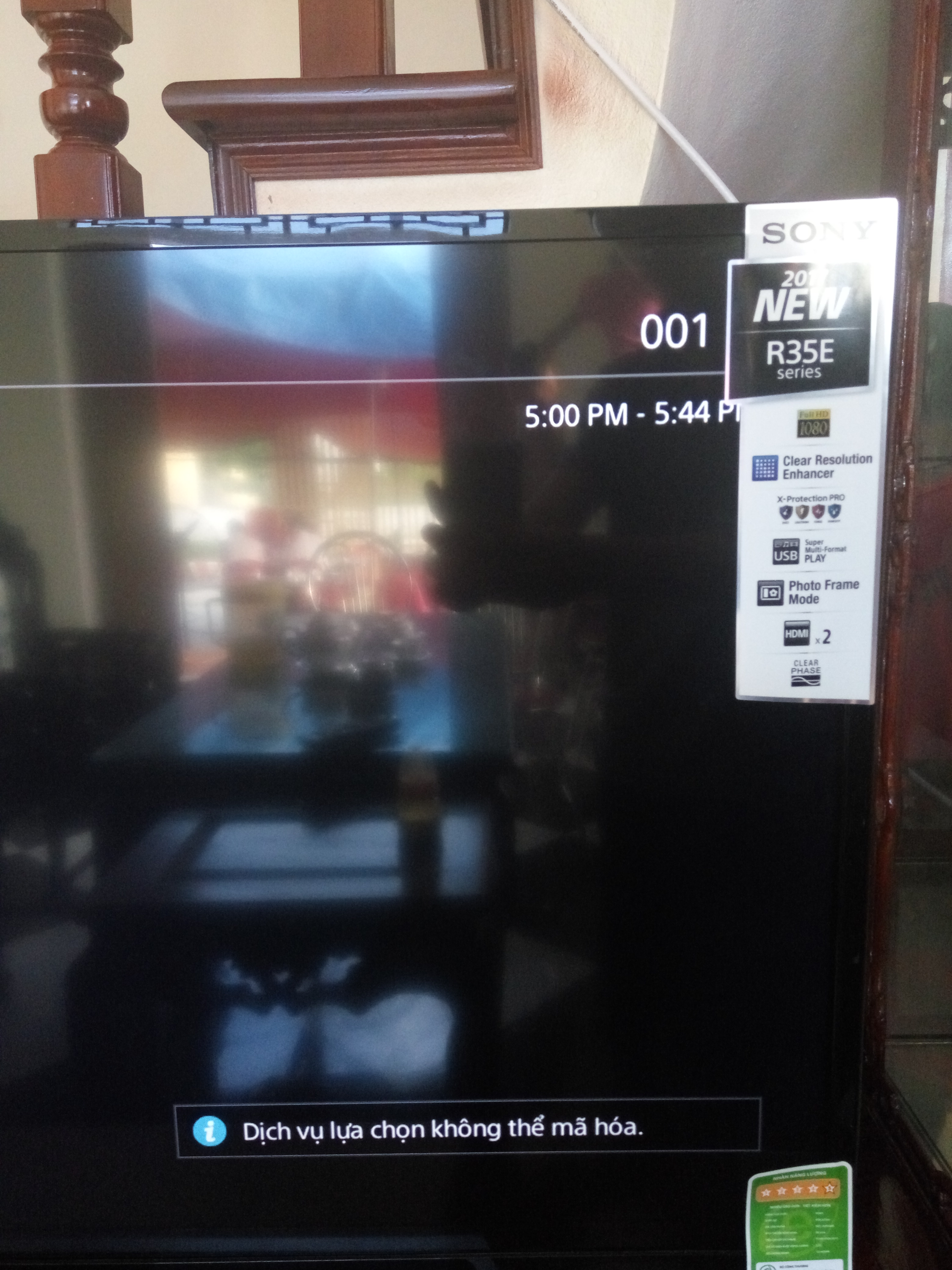 Khi màn hình Sony hiện “dịch vụ lựa chọn không thể mã hoá” thường do đổi tần số, kênh đã bị mã hoá hoặc tín hiệu yếu. Trước tiên kiểm tra vị trí ăng-ten, di chuyển nhẹ để nhận tín hiệu tốt hơn và xem trên nhãn tivi hoặc hướng dẫn để biết tivi có tích hợp đầu thu DVB‑T2 hay không.