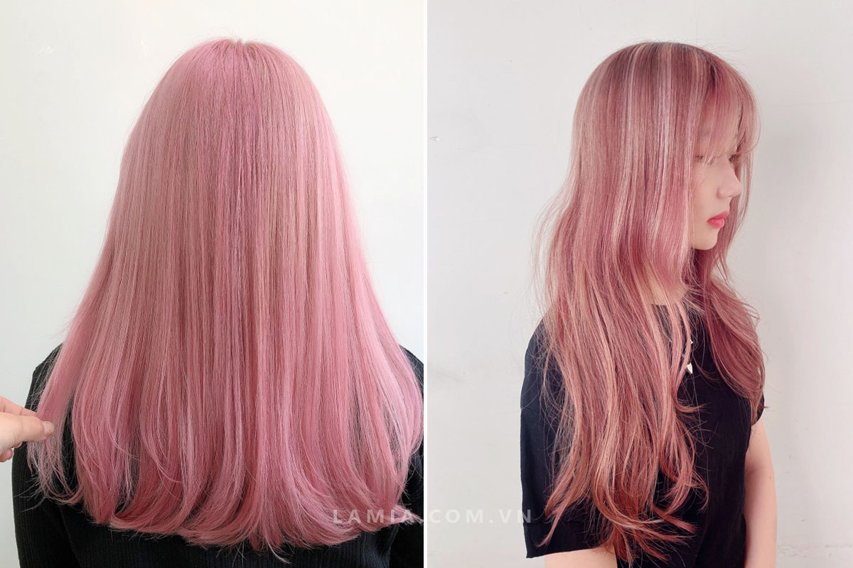 Quá trình nhuộm cũng khá đơn giản. Bạn chỉ cần pha chế dung dịch nhuộm rồi chia tóc thành nhiều lọn. Ghi nhớ là phải bảo vệ da tay và mặc áo choàng khi nhuộm nhé! Kết quả sẽ là mái tóc dài, bồng bềnh với sắc hồng trà sữa ánh hồng tươi tắn, làm say lòng biết bao ánh nhìn. Hãy thử ngay để làm mới bản thân nào!