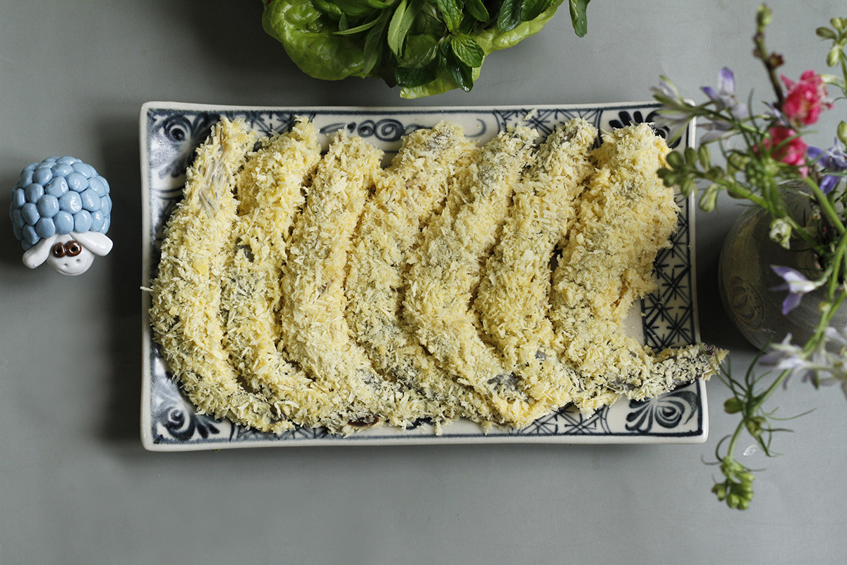 Tôm chiên xù không chỉ có phần nhân tôm nguyên con chắc thịt mà còn được tẩm ướp đậm đà, tạo nên hương vị thơm ngon khó cưỡng. Mỗi con tôm được phủ một lớp bột chiên xù vàng óng, giòn rụm bên ngoài, khiến món ăn càng trở nên lôi cuốn. Đặc biệt, tôm sú chiên xù còn được bóc một phần vỏ để dễ ăn hơn.