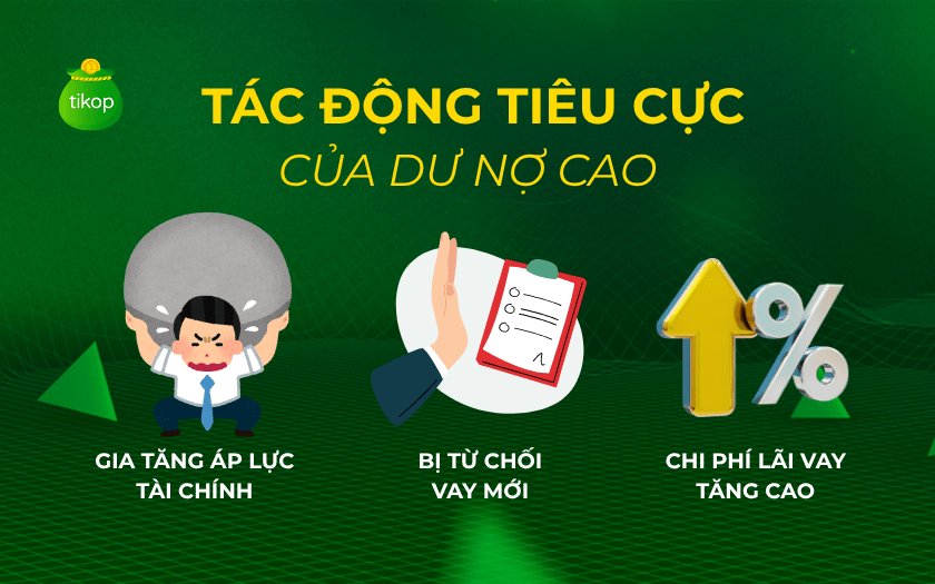 Dư nợ tín dụng là chỉ số phản ánh sức khỏe tài chính của mỗi cá nhân hay doanh nghiệp. Khi tổng dư nợ gia tăng mà không có kế hoạch trả nợ hợp lý, rủi ro tài chính cũng sẽ theo đó tăng lên. Ngược lại, nếu người vay thường xuyên thanh toán đúng hạn, thì tổng dư nợ sẽ giảm dần, điều này giúp cải thiện uy tín tín dụng.