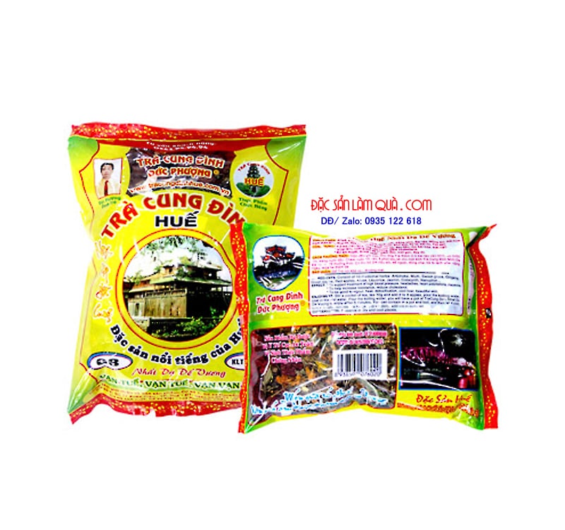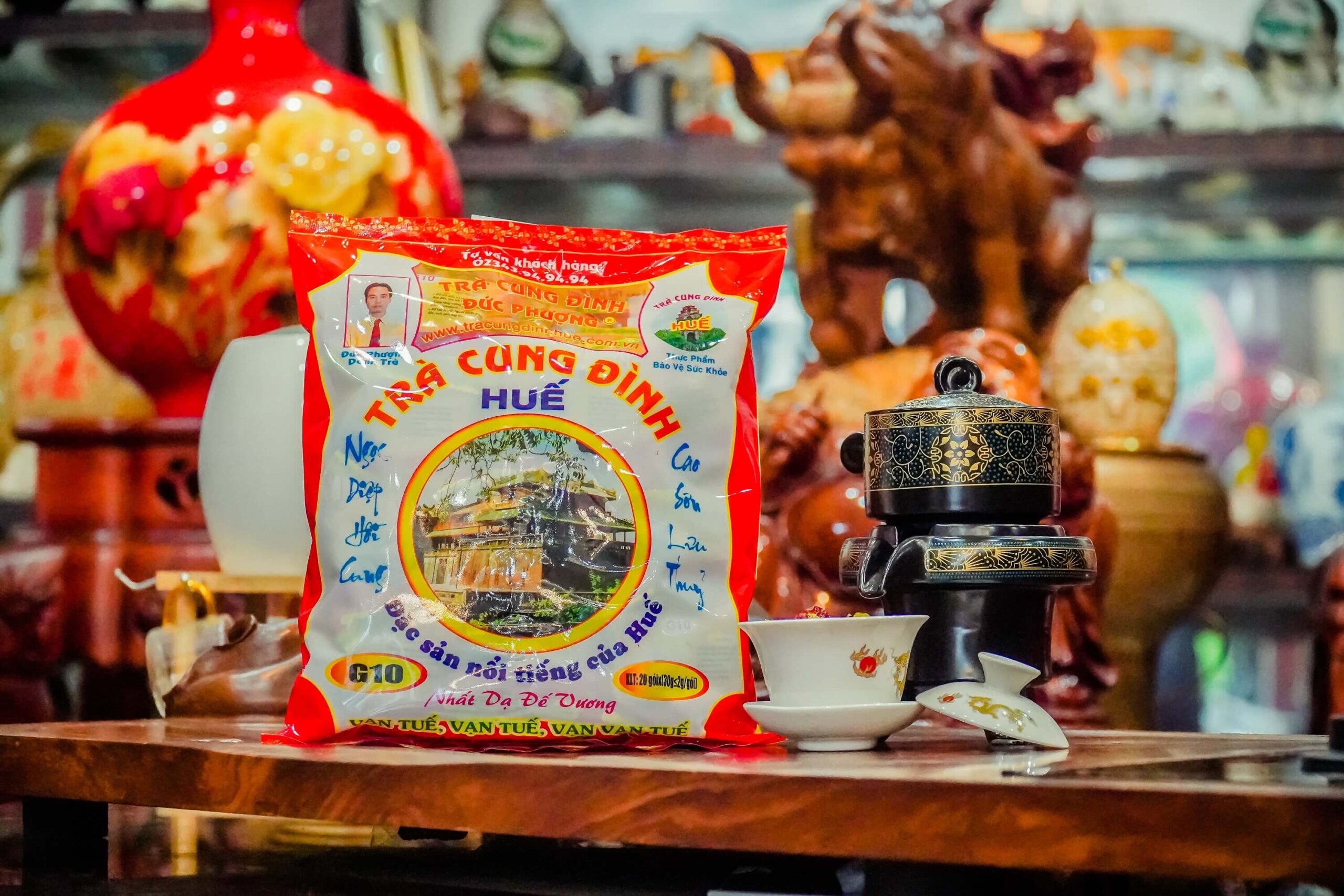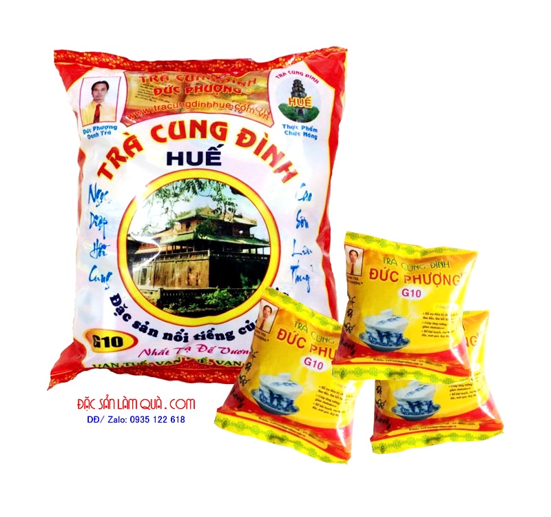 Trà cung đình Huế không chỉ mang đến vị ngon riêng biệt mà còn gợi nhớ về nét văn hóa truyền thống của xứ Huế. Mỗi gói trà được chăm chút kỹ lưỡng, đảm bảo giữ trọn hương vị và chất lượng. Bạn có thể dễ dàng lựa chọn giữa nhiều loại trà khác nhau như Trà Cung Đình G8, G9 hay G10, mỗi loại đều mang một sắc thái hấp dẫn riêng.