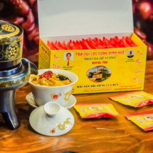 Trà Cung Đình Chính Gốc là một sản phẩm đặc biệt, mang đậm hương vị văn hóa Huế. Được chế biến từ 16 loại thảo dược thiên nhiên, bao gồm atiso, cúc hoa, hoài sơn, đẳng sâm và nhiều loại khác, trà này không chỉ ngon mà còn tốt cho sức khỏe. Các nguyên liệu chủ yếu đều là lá trà tươi, được lựa chọn kỹ càng từ những vườn trà của cung đình Huế, đảm bảo chất lượng tốt nhất cho người tiêu dùng.