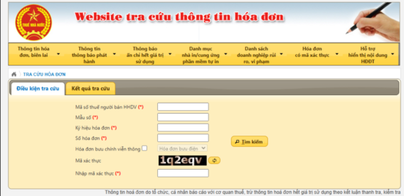 Nếu bạn muốn tra cứu theo mã hóa đơn, chỉ cần nhập các thông tin như tên công ty, mẫu số, ký hiệu và số hóa đơn vào ô tương ứng. Một lựa chọn khác là tra cứu theo mã cơ quan thuế, giúp bạn xác thực hóa đơn một cách hiệu quả mà không cần đăng nhập vào hệ thống.