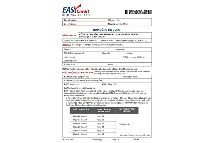 Một cách khác là liên hệ với tổng đài Easy Credit qua hotline 1900 10 66. Khi gọi, bạn cần cung cấp thông tin cá nhân như CMND, số điện thoại, và địa chỉ email. Sau khi xác thực thông tin, nhân viên sẽ gửi tài liệu hợp đồng dưới dạng file PDF tới email của bạn.
