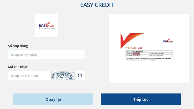 Để tra cứu khoản vay tại Easy Credit, có một số phương thức đơn giản mà bạn có thể thực hiện. Đầu tiên, hãy truy cập vào trang web chính thức của Easy Credit và tìm đến mục “Tra cứu khoản vay”. Tại đây, bạn chỉ cần nhập số CMND hoặc CCCD cùng với số hợp đồng nếu có. Sau đó, nhập mã OTP được gửi về điện thoại của bạn để hoàn tất bước xác thực.
