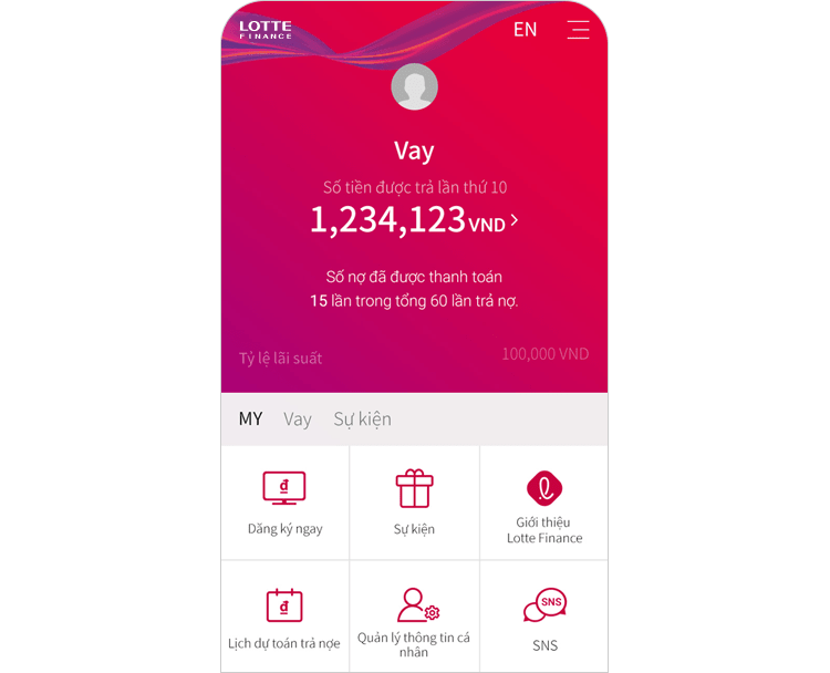 Mọi thông tin liên quan đến mã khoản vay và trạng thái trả góp đều được cập nhật liên tục, đảm bảo rằng bạn sẽ luôn nắm bắt được tình hình tài chính của mình một cách an toàn và hiệu quả. Thật dễ dàng để quản lý khoản vay của bạn với Lotte Finance phải không nào!