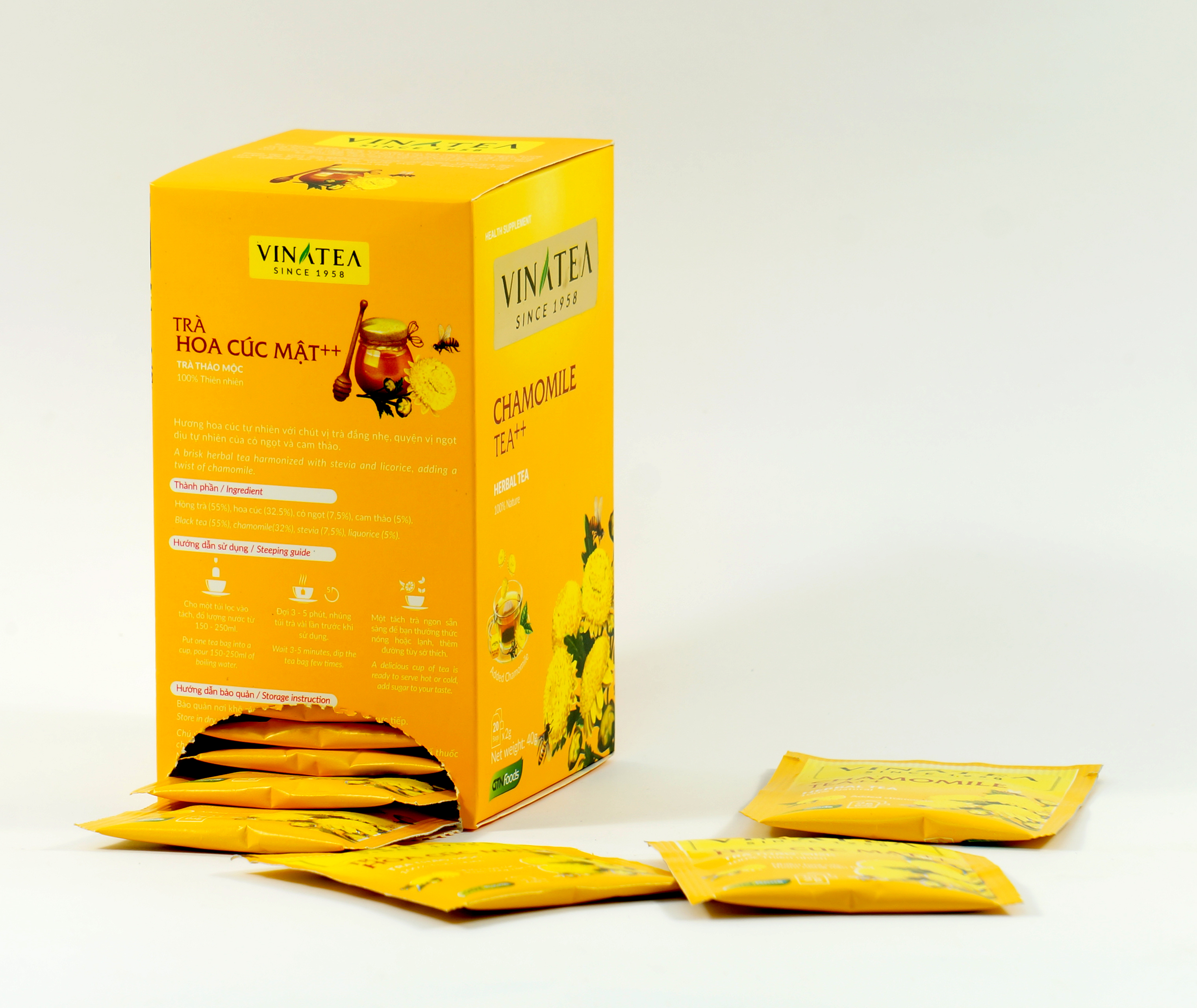 Trà hoa cúc Vinatea có vị đắng nhẹ, nhẹ nhàng the mát, mang đến cảm giác thư giãn tối đa. Sau một ngày dài, một tách trà hoa cúc sẽ giúp bạn giải tỏa căng thẳng và dễ dàng chìm vào giấc ngủ. Hãy mua ngay một hộp trà và trải nghiệm những giây phút tuyệt vời bên gia đình và bạn bè nhé!