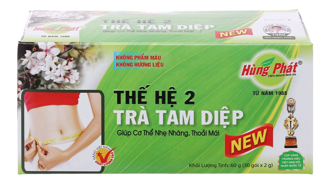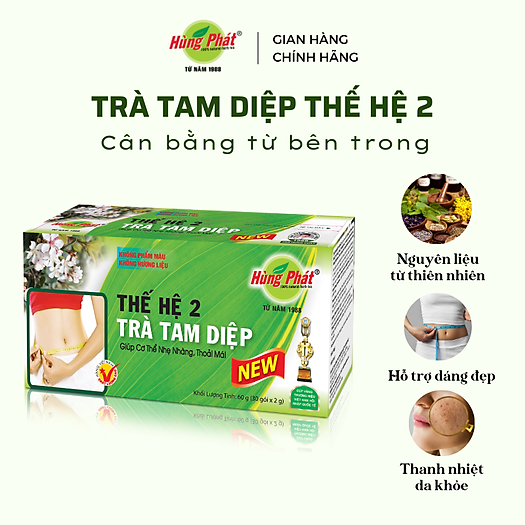 Hơn 30 năm kinh nghiệm của công ty Hùng Phát đã tạo nên một sản phẩm được khách hàng tin tưởng. Với Trà Tam Diệp thế hệ 2, bạn không chỉ được thưởng thức một loại trà ngon mà còn hướng đến vóc dáng cân đối, khỏe mạnh. Hãy để những lá trà thảo mộc tự nhiên mang đến cho bạn sự hài lòng và thanh lọc cơ thể!