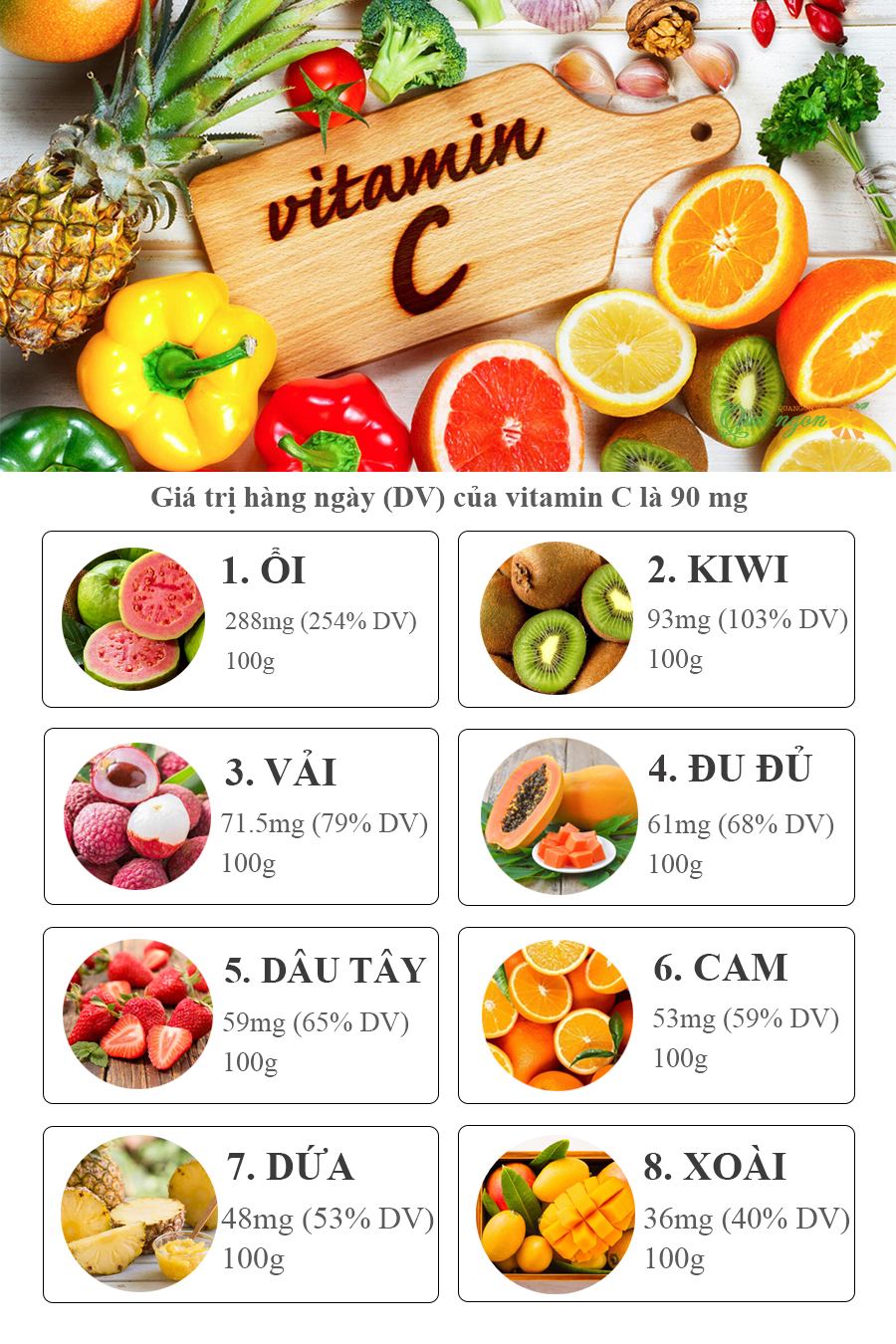Vitamin C là một chất dinh dưỡng thiết yếu, đóng vai trò quan trọng trong việc tăng cường sức đề kháng, bảo vệ cơ thể trước các tác nhân gây bệnh. Trái cây là nguồn cung cấp vitamin C tự nhiên phổ biến, dễ dàng tìm thấy trong đời sống hàng ngày. Việc bổ sung trái cây giàu vitamin C không chỉ giúp tăng cường hệ miễn dịch mà còn mang lại nhiều lợi ích cho sức khỏe như làm đẹp da, chống lão hóa, hỗ trợ hấp thu sắt tốt hơn. Bài viết dưới đây sẽ giúp bạn hiểu rõ hơn về các loại trái cây giàu vitamin C, tác dụng và những lưu ý khi sử dụng.