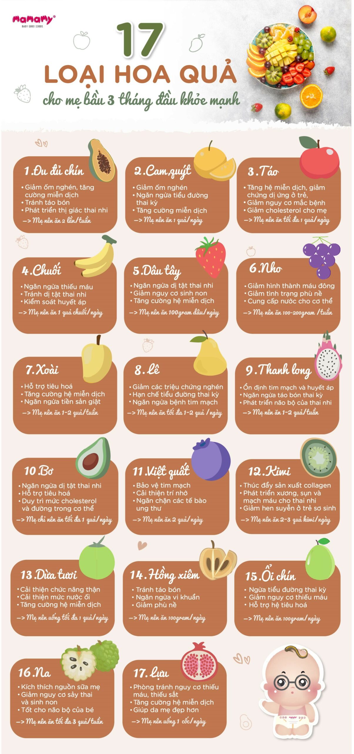 Bên cạnh đó, việc bổ sung đầy đủ các loại trái cây vào cơ thể không chỉ giúp mẹ bầu duy trì sức khỏe mà còn tạo nền tảng vững chắc cho sự phát triển của thai nhi. Chúc mẹ luôn khỏe mạnh và có một thai kỳ suôn sẻ!