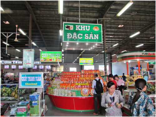 Bên trong khu vực trạm dừng còn có các gian hàng đặc sản như trái cây theo mùa hoặc các loại bánh, kẹo đặc trưng của từng vùng. Khách hàng có thể thưởng thức ngay tại trạm hoặc mua về làm quà cho người thân sau chuyến hành trình.