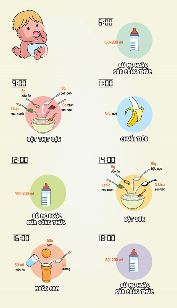 Giấc ngủ trưa vào khoảng 12:30 đến 14:30 cũng rất quan trọng. Sau khi thức dậy, bé sẽ tiếp tục được bú sữa công thức, khoảng 170-230 ml. Mẹ nên nhớ, giai đoạn này không chỉ đơn thuần là ăn dặm, mà còn là thời gian quý báu để bé làm quen với những hương vị mới.
