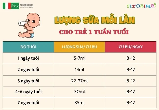 Trong những ngày đầu sau khi sinh, lượng sữa cho trẻ sơ sinh rất quan trọng để đảm bảo sự phát triển và sức khỏe của bé. Trong 24 giờ đầu, bé cần từ 5 đến 7ml cho mỗi cữ bú, thường bú khoảng 8 đến 12 lần. Khi bé được từ 7 ngày đến 1 tháng tuổi, lượng sữa sẽ tăng lên khoảng 35 – 60ml, với 6 – 8 cữ bú trong ngày, giúp cung cấp năng lượng cần thiết cho sự phát triển của bé.