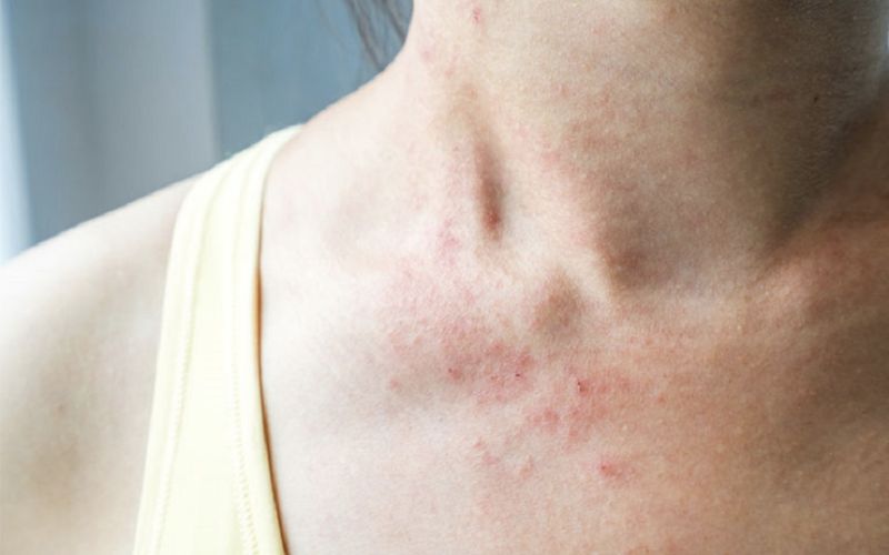 Da cũng “kêu cứu” với phát ban, mề đay đỏ ửng, ngứa ngáy ở mặt, ngực hay vùng tiếp xúc. Mắt thì ngứa rát, chảy nước mắt, đỏ hoe, đôi khi sưng mí.