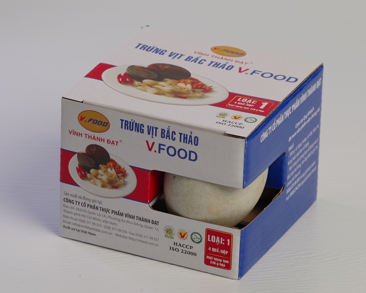 Trứng Bắc Thảo V.Food có giá 30.000 đồng cho hộp 240g, hay trứng vịt Bắc Thảo với giá 12K/quả.