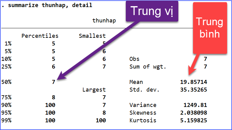 Cả hai cách tính này đều mang lại thông tin hữu ích, nhưng trong một số trường hợp, trung bình có thể bị ảnh hưởng bởi những giá trị ngoại lai, trong khi trung vị lại thể hiện tốt hơn về xu hướng phân phối của dữ liệu. Do đó, tuỳ thuộc vào mục đích phân tích mà chúng ta sẽ chọn sử dụng trung bình hay trung vị cho phù hợp.