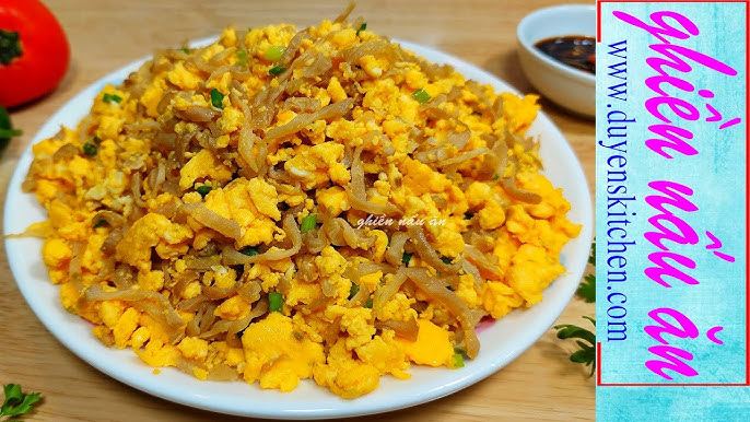 Khi mọi thứ đã sẵn sàng, bạn chỉ cần cho lòng trứng vào chảo nóng cùng dầu ăn, thêm củ cải muối vào rồi chiên cho đến khi trứng chín vàng. Chúc bạn có một món trứng chiên củ cải muối hấp dẫn, không chỉ ngon miệng mà còn bổ dưỡng cho cả gia đình!