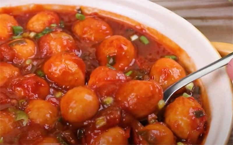 Cuối cùng, cho trứng cút đã bóc vỏ vào chảo, đảo nhẹ để trứng ngấm sốt. Món trứng cút sốt cà chua không chỉ hấp dẫn bởi màu sắc mà còn thơm ngon đậm đà, chắc chắn sẽ là món ăn yêu thích của cả gia đình. Hãy thưởng thức món ngon này cùng cơm trắng và đừng quên rắc chút hành lá lên trên để trang trí nhé!