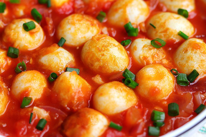 Trứng cút sốt cà chua là món ăn đơn giản nhưng lại vô cùng hấp dẫn. Để bắt đầu, bạn chỉ cần luộc 30 quả trứng cút trong nước sôi khoảng 10 phút, sau đó vớt ra và bóc vỏ. Một mẹo nhỏ giúp việc bóc vỏ trở nên dễ dàng hơn là cho vào một ít nước lạnh ngay sau khi luộc xong.