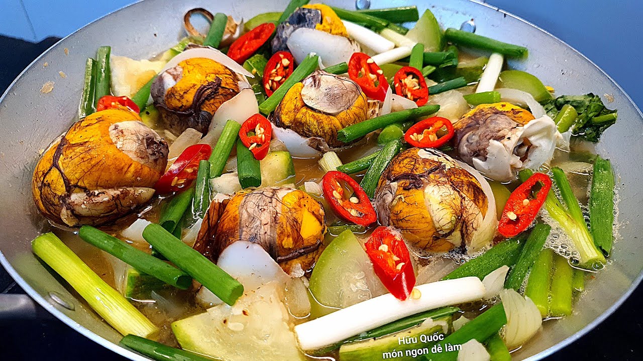 Trứng vịt lộn là món ăn dân dã nhưng tuyệt vời, có thể chế biến thành nhiều món ngon hấp dẫn. Một trong những món nổi bật là lẩu hột vịt chua cay, nóng hổi, rất thích hợp cho những buổi tụ tập bạn bè. Nước lẩu thơm lừng, kết hợp với trứng vịt lộn béo ngậy, chắc chắn sẽ làm hài lòng mọi thực khách.