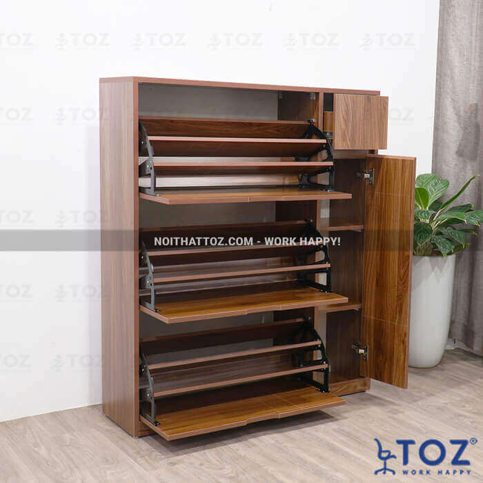 Tủ đựng giày thông minh đang trở thành lựa chọn phổ biến cho nhiều gia đình, nhất là trong thời đại hiện đại với không gian sống ngày càng hạn hẹp. Với thiết kế thông minh, tủ giày này có khả năng chứa gấp 2-3 lần số lượng giày dép so với tủ truyền thống, giúp tiết kiệm diện tích một cách hiệu quả. Điều này thực sự tuyệt vời cho những ai sống trong căn hộ nhỏ, nơi mà việc tận dụng từng centimet không gian là điều cần thiết.