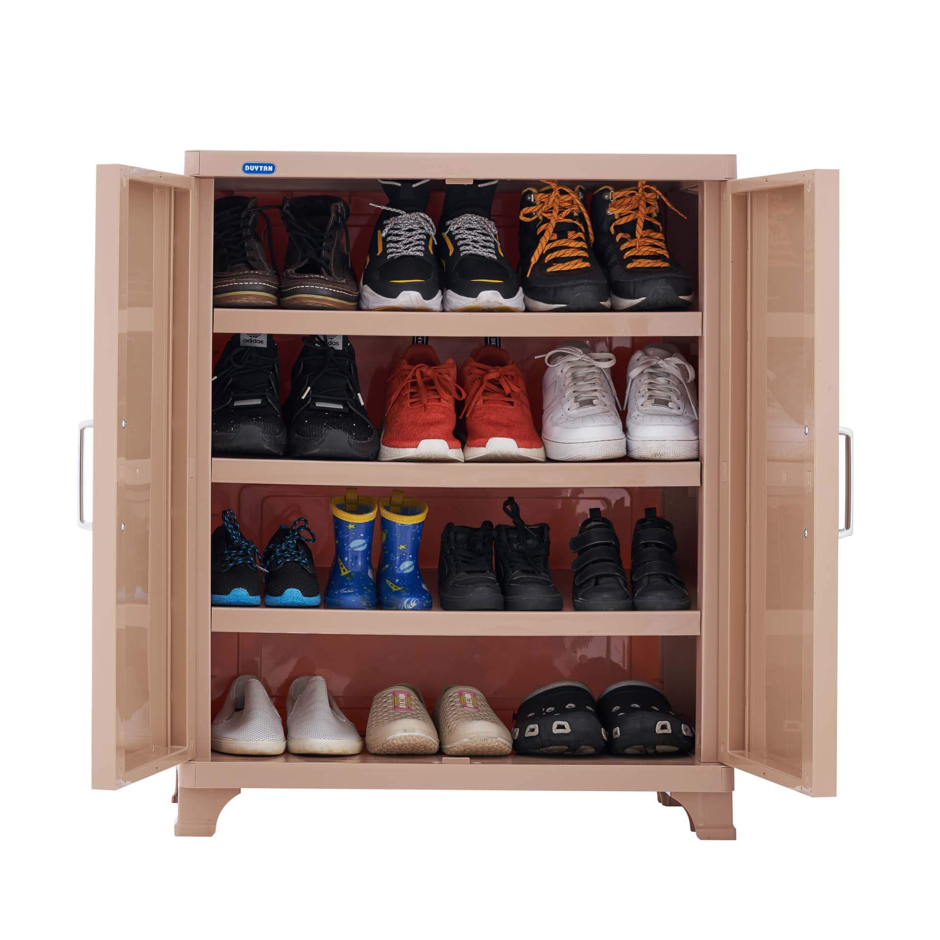 Tủ giày Suki của Duy Tân có thiết kế thông minh với ba tầng, thuận tiện để đựng giày dép của cả trẻ em và người lớn. Các lỗ thông khí ở hai bên tủ giúp không khí lưu thông tốt, giảm thiểu mùi hôi, giữ cho giày dép luôn trong tình trạng tốt nhất. Giá cả hợp lý cũng là một điểm cộng lớn, khiến Duy Tân trở thành thương hiệu yêu thích của nhiều gia đình Việt.