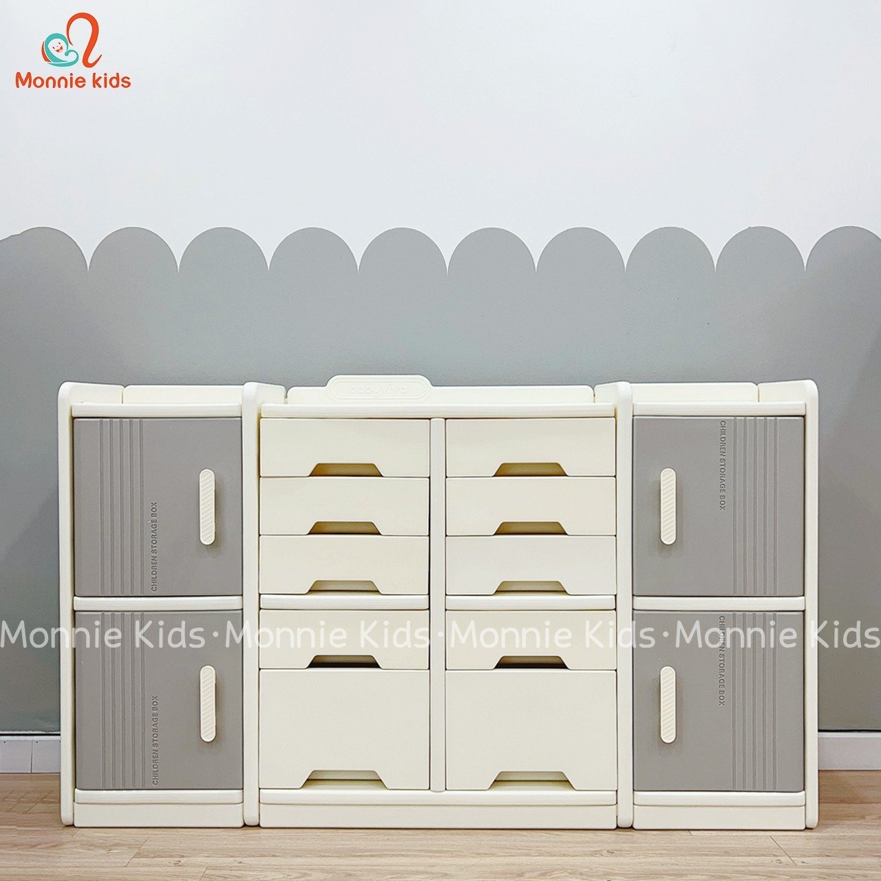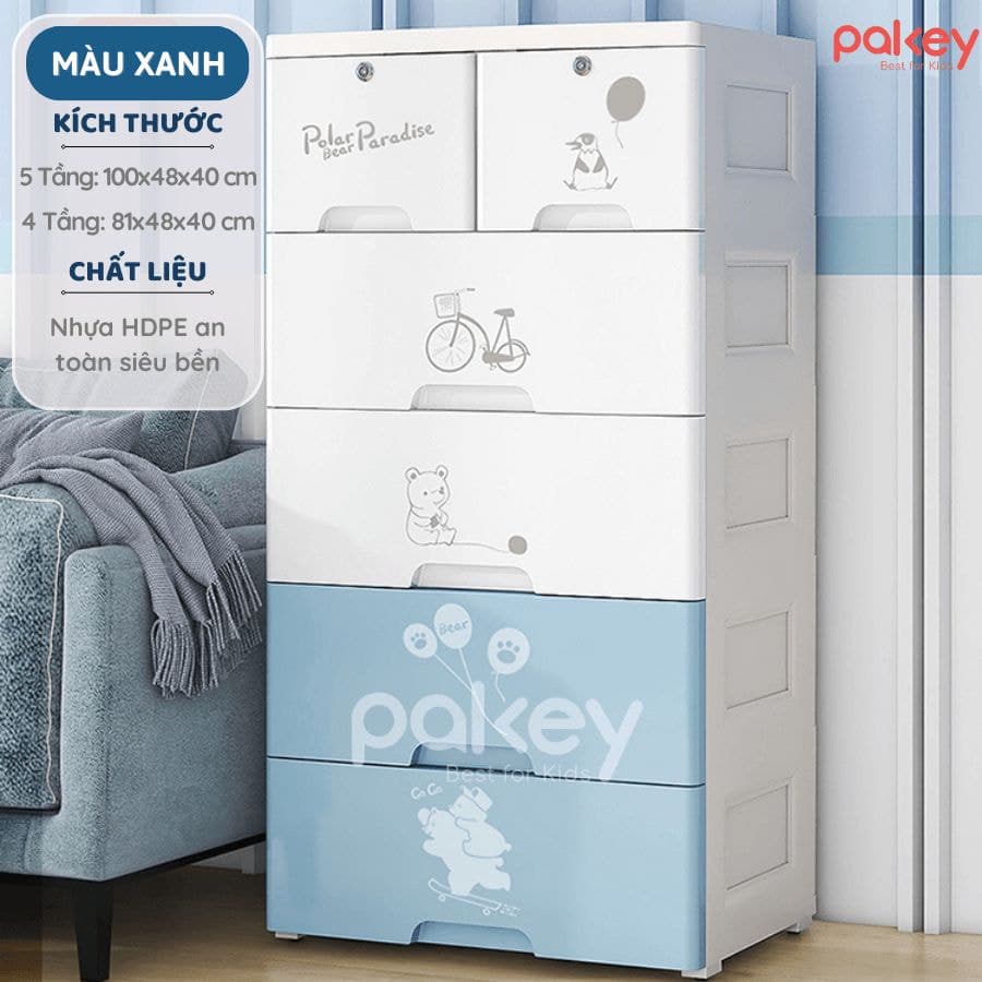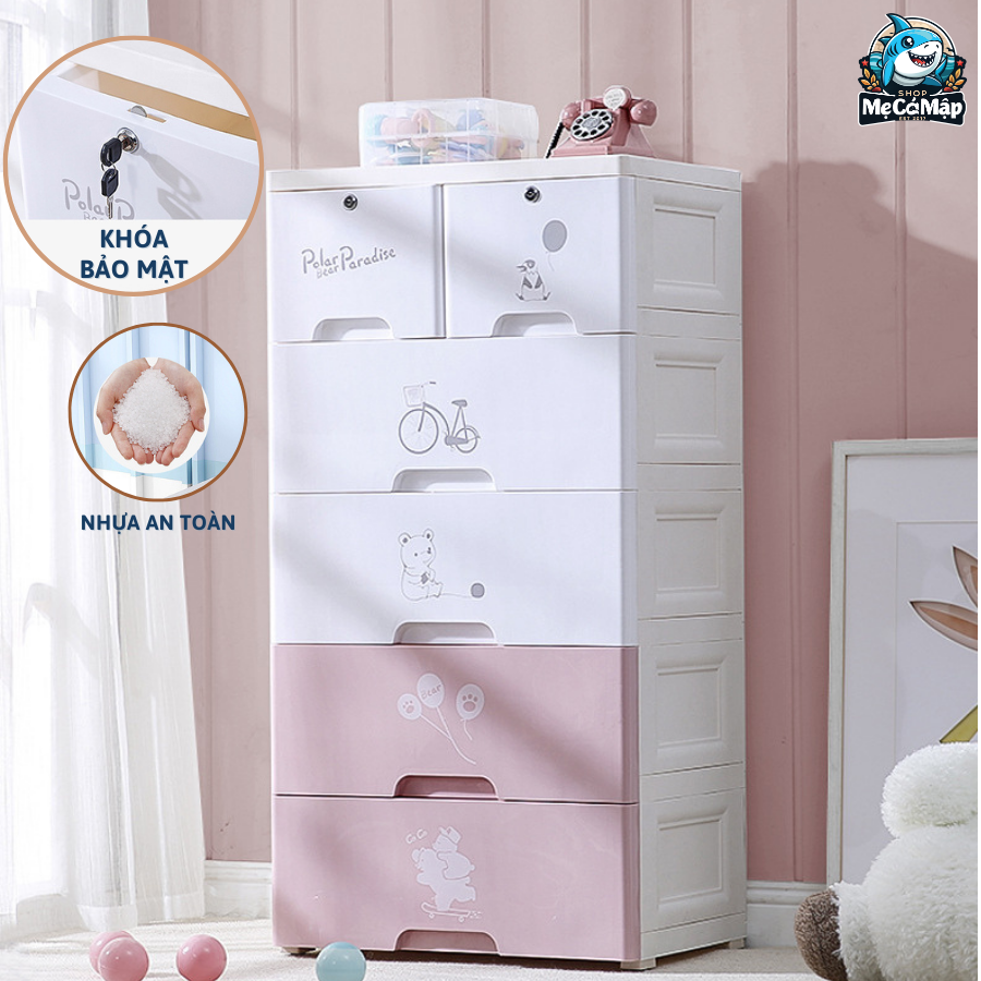 Chất liệu nhựa cao cấp giúp tủ bền bỉ theo thời gian và dễ dàng vệ sinh. Thiết kế thông minh với nhiều ngăn kéo giúp phụ huynh dễ dàng phân chia đồ đạc, từ quần áo cho đến khăn tắm và đồ chơi. Điều này không chỉ tiết kiệm không gian mà còn tạo ra thói quen gọn gàng cho trẻ ngay từ nhỏ.