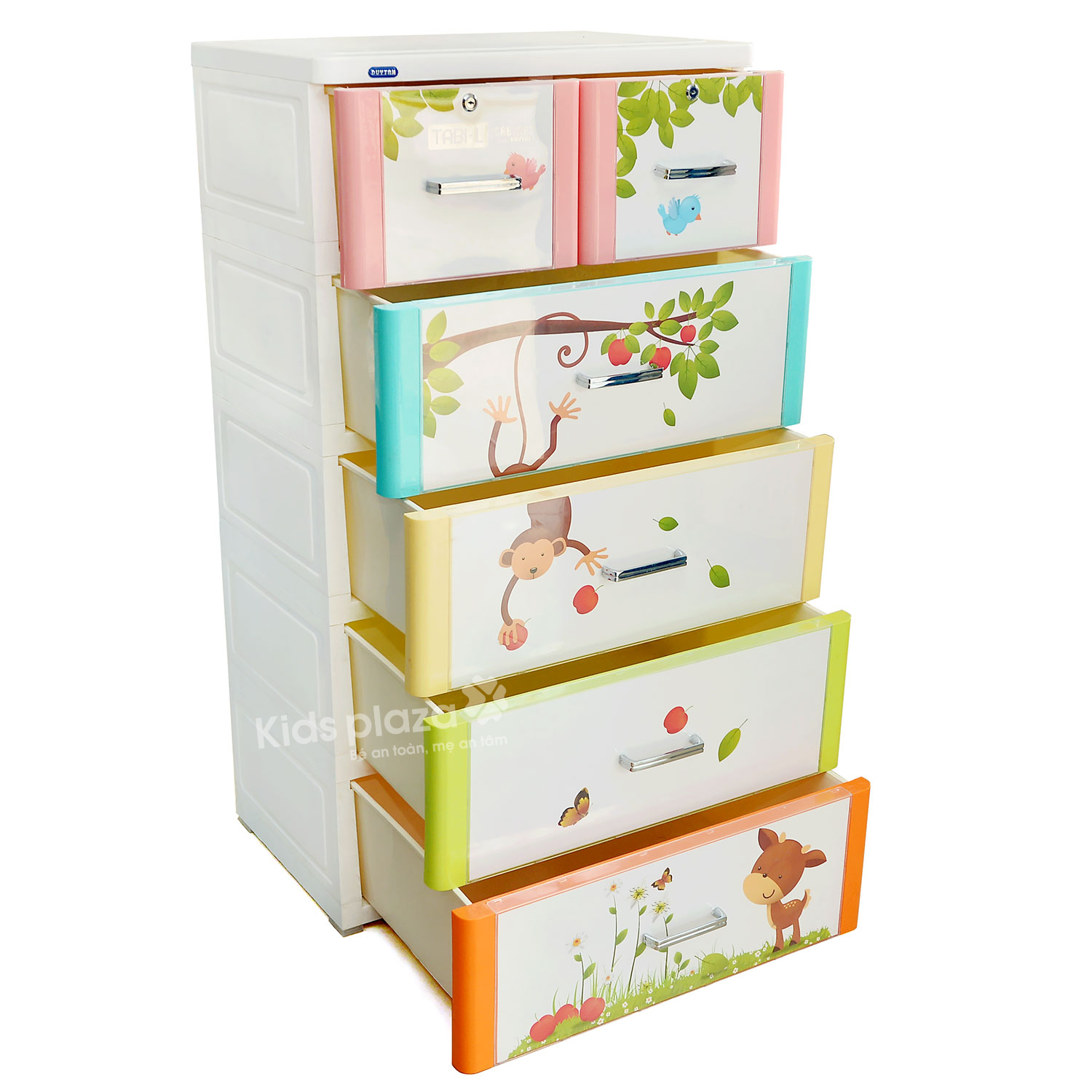 Một điểm cộng lớn là hai ngăn trên cùng được trang bị khóa an toàn và thiết kế chống rơi, đảm bảo an toàn cho các bé khi sử dụng. Những hoa văn sinh động, gần gũi với thế giới động vật hay thiên nhiên khiến sản phẩm trở nên hấp dẫn hơn cho trẻ. Tủ Nhựa Duy Tân không chỉ tiện lợi mà còn tạo điểm nhấn cho không gian phòng trẻ.
