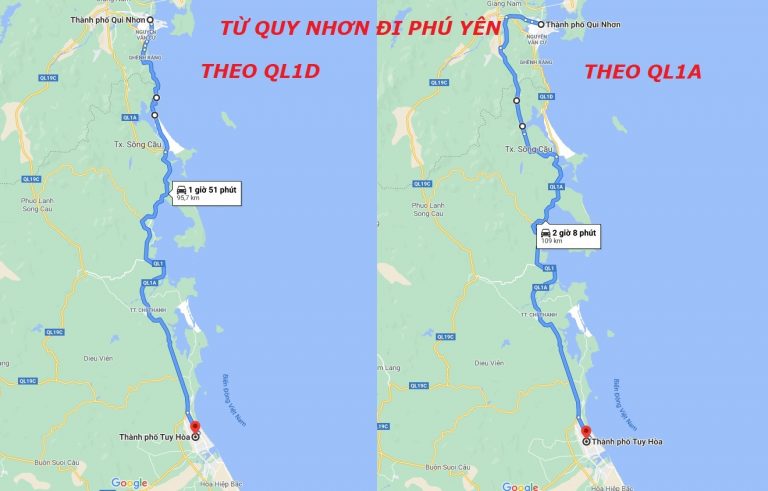 Quy Nhơn và Phú Yên là hai địa phương ven biển nổi tiếng của miền Trung Việt Nam, với khoảng cách chỉ khoảng 136 km giữa chúng. Nếu bạn di chuyển theo Quốc lộ 1A, hành trình sẽ mất khoảng 2 tiếng. Đường đi khá thoáng đãng, bạn sẽ được ngắm nhìn những cảnh biển tuyệt đẹp và những cánh đồng xanh mơn mởn hai bên đường.
