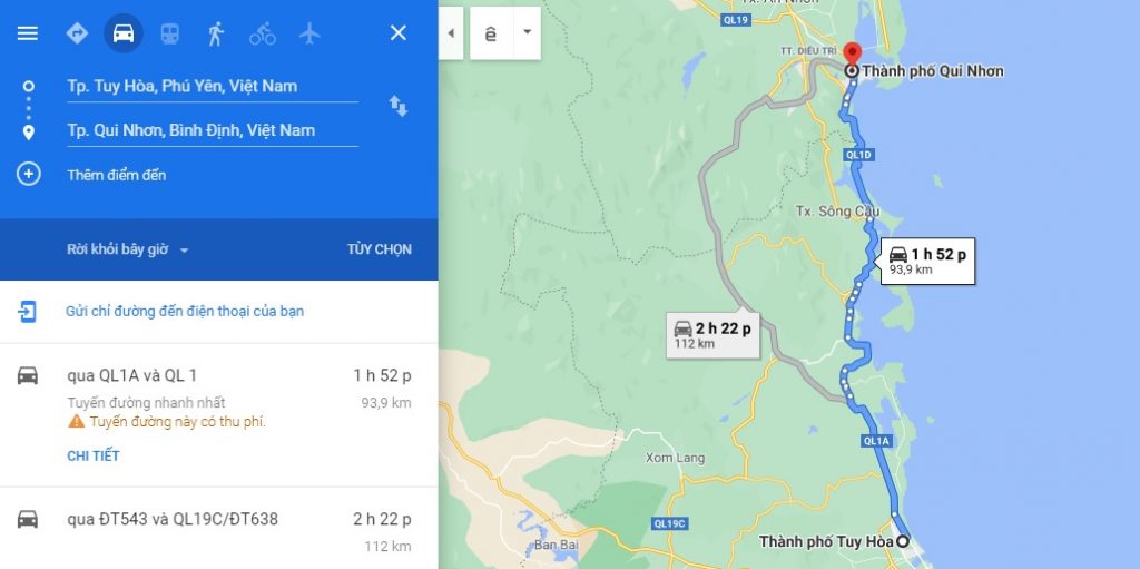 Nếu bạn đang lên kế hoạch cho một chuyến đi từ Quy Nhơn đến Phú Yên, chắc hẳn bạn sẽ muốn biết khoảng cách và thời gian di chuyển. Từ trung tâm thành phố Quy Nhơn đến Tuy Hòa, thủ phủ của Phú Yên, chỉ cách nhau khoảng 136 km. Đường đi chủ yếu theo tuyến Quốc lộ 1A, thuận tiện và dễ dàng.
